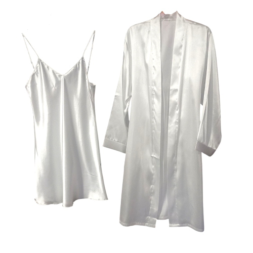 Σετ σατέν ρόμπα με νυχτικό (P9022-2) ΛΕΥΚΟ